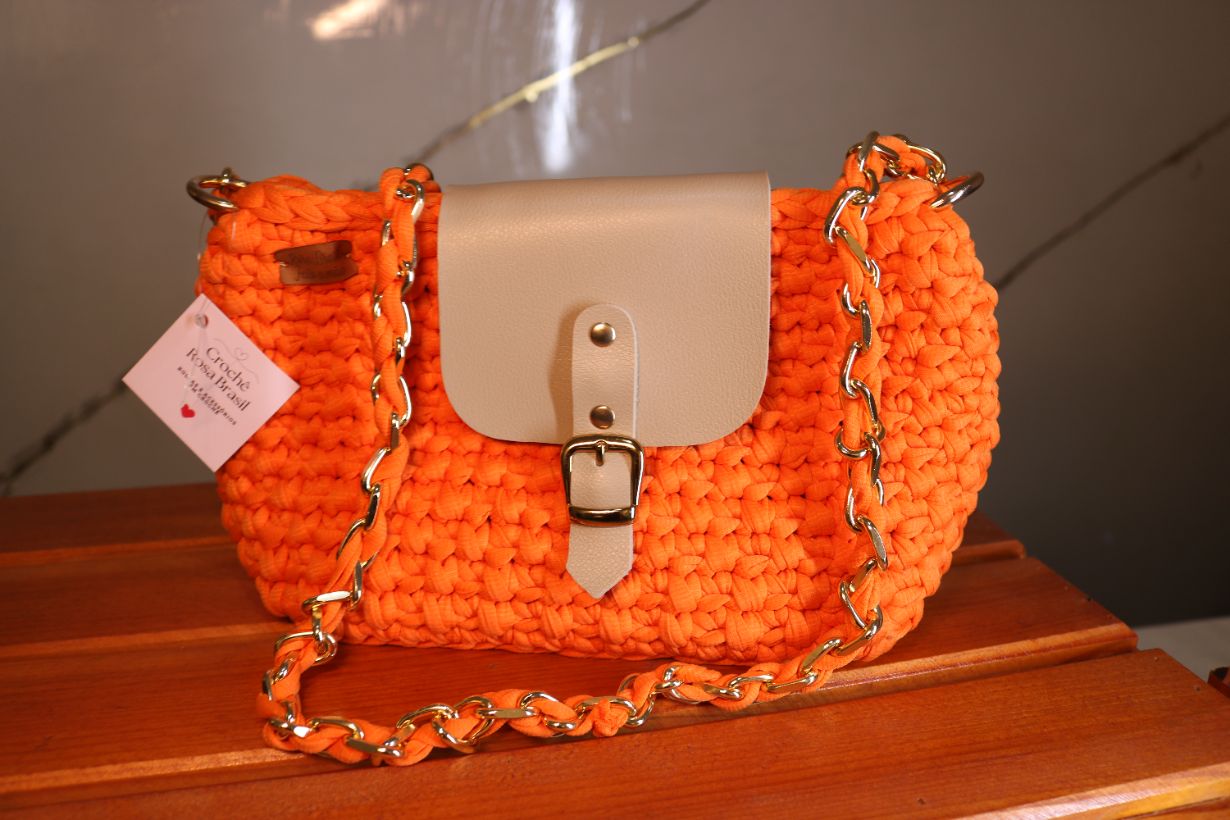 Com seu tom vibrante em fio de malha premium laranja, ela ilumina qualquer look, trazendo charme e energia. Possui alça de mão em crochê laranja com detalhes em dourado e fecho em couro sintético, garantindo segurança e elegância no dia a dia.